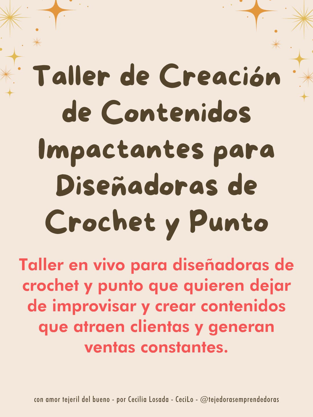 Toda la información aquí https://clubdetejido.com/taller-de-contenidos-impactantes-para-disenadoras-de-crochet-y-punto/
